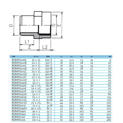 Ниппель переходной втулочное окончание ВР EFFAST d90x4" (RGRAFG090L)