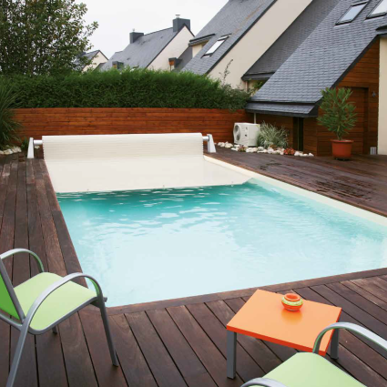 • Размеры торцевых стоек: Электрическая версия: Высота шахты 32 см (для бассейнов до 5,00 х 13,50 м) Высота шахты 37 см (для бассейнов до 8,00 х 16,50 м) Солнечная / ручная версия: Высота шахты 32 см (для бассейнов до 5,00 х 11,00 м)