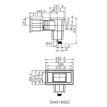 Скиммер под бетон EM0140-SС с квадратной крышкой. Изготовлен из прочного ABS пластика, устойчивого к ультрафиолету, давлению воды и химическим реагентам.