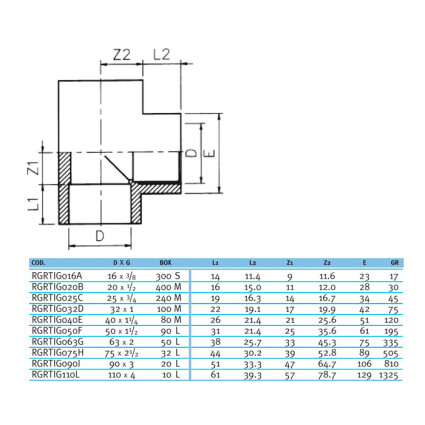 Тройник 90° переходной с резьбой EFFAST d90x3" (RGRTIG090L)
